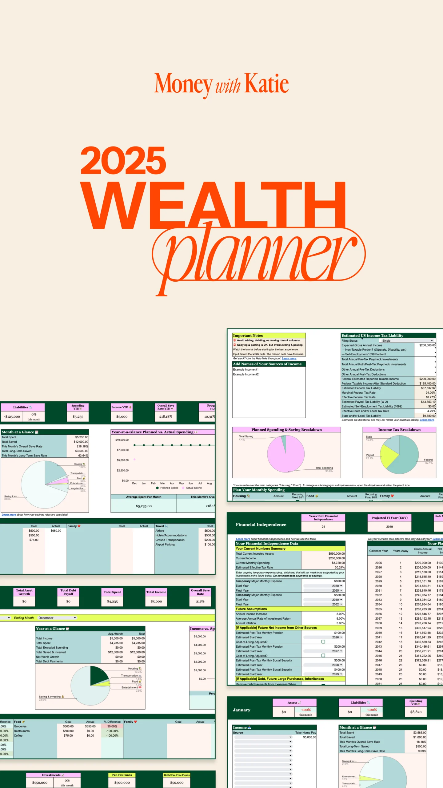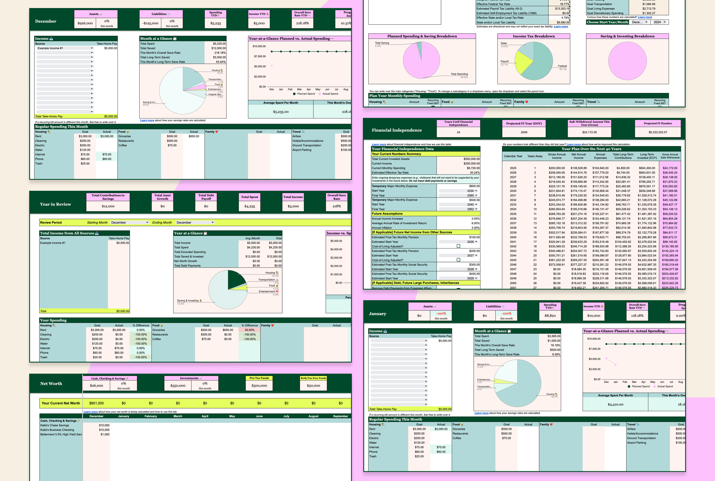 “Amazing updates this year, Katie!!! Looove loooove looove the Financial Independence tab and the % to FI at the top of each month’s tab! Was too excited…thank you so much!” —AJ